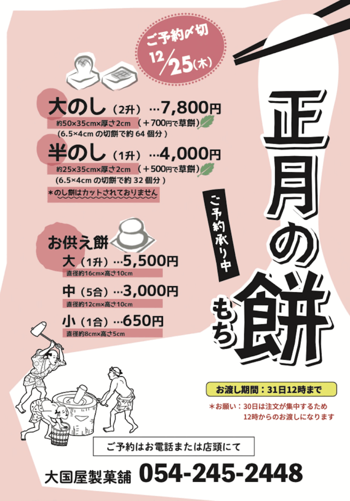 正月餅の御予約及び価格改定(値上げ)のお知らせ