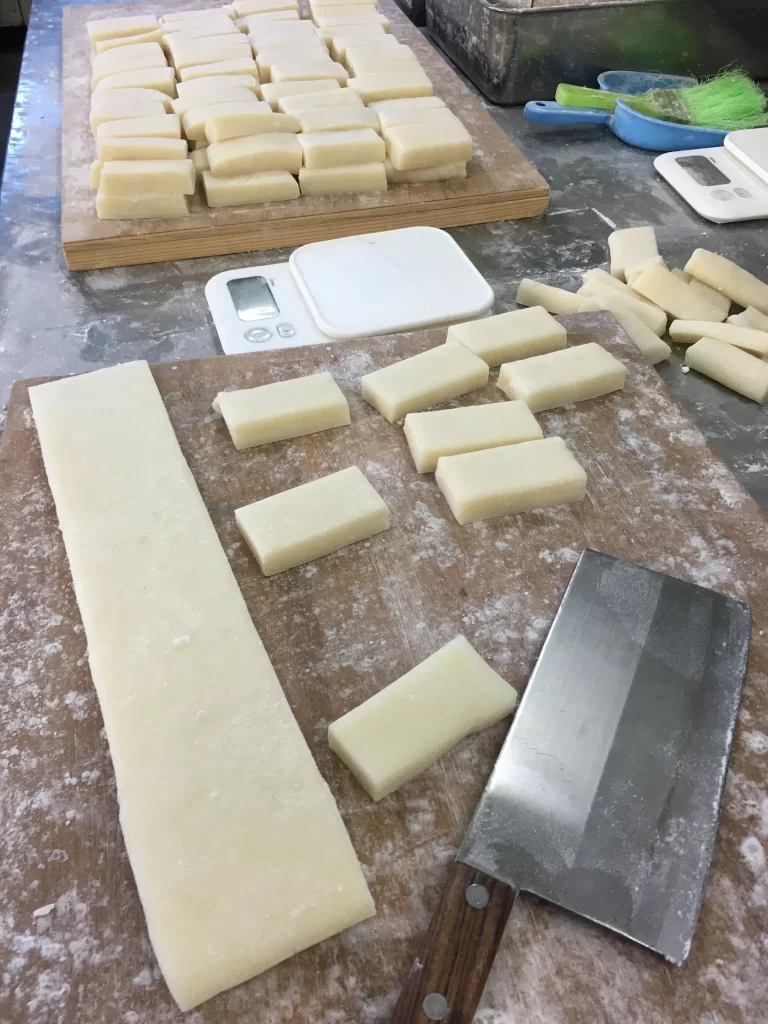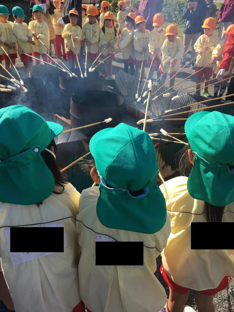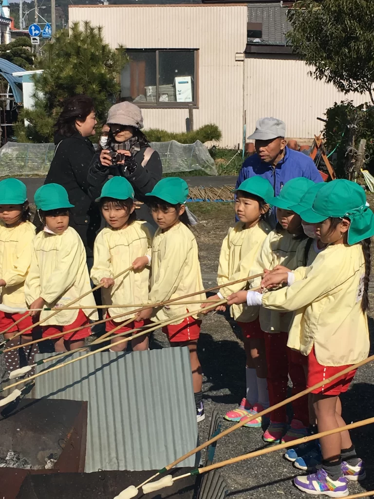 この写真のように、一片が50gほどのお餅に先生たちが割り箸を刺して・・・