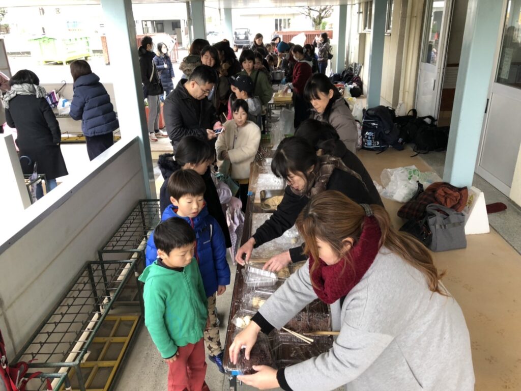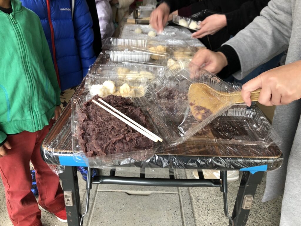 安東小学校の「おやじの会」主催の餅つき大会でした。