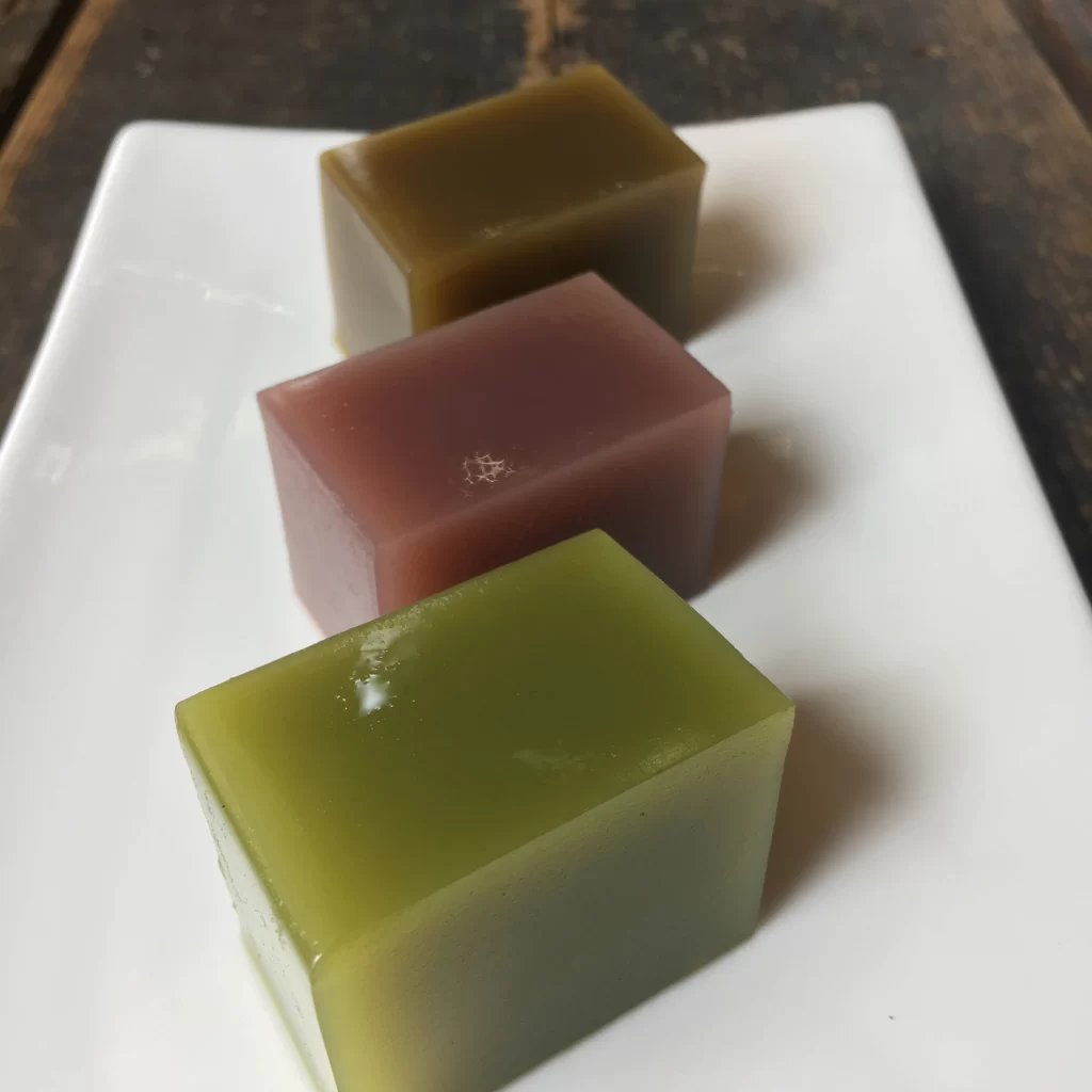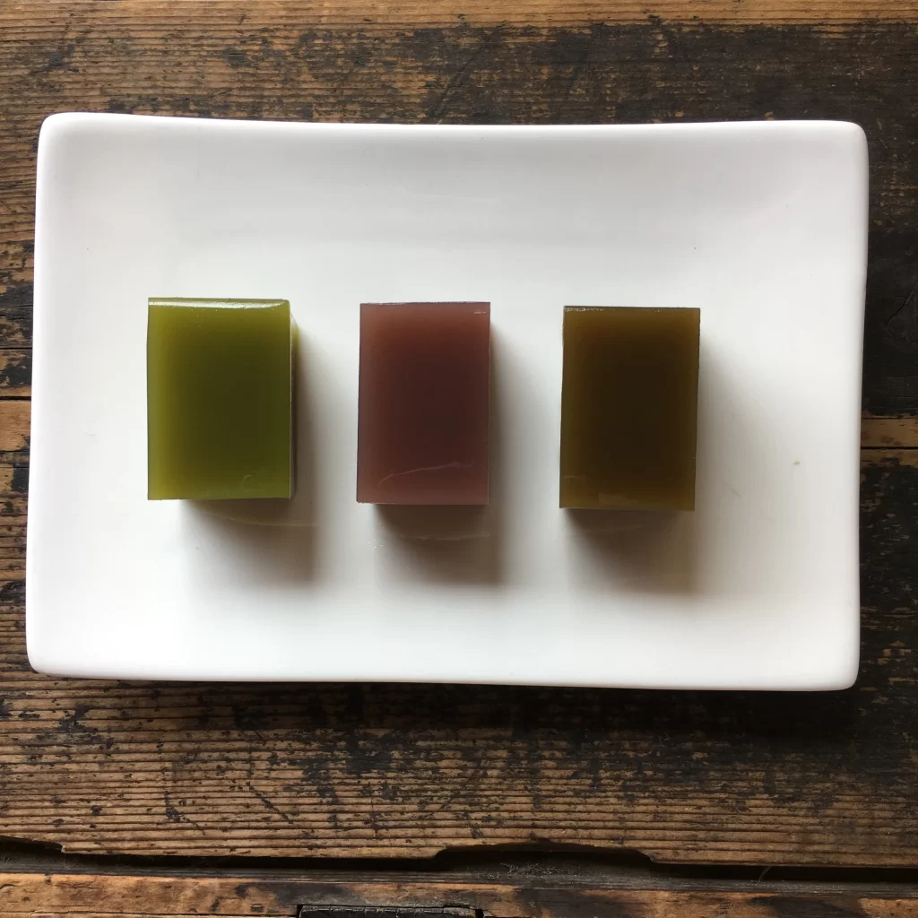・水ようかん(こしあん・玄米茶・ほうじ茶)各120円