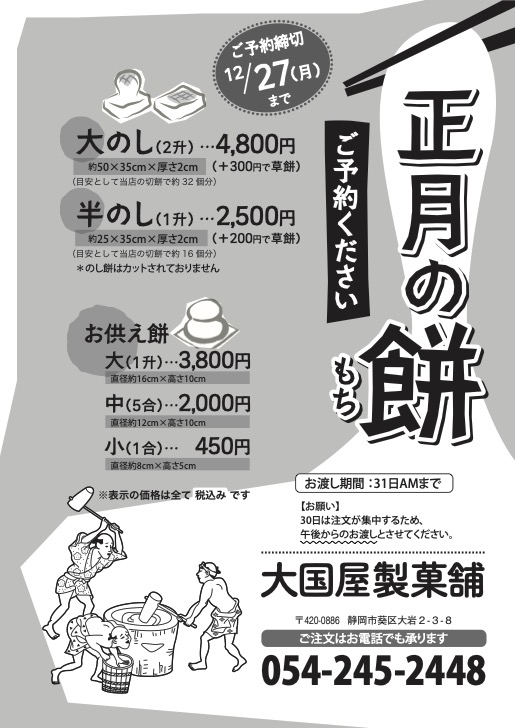 *30日(木)は注文が集中するため、午後からの受け渡しとなります。