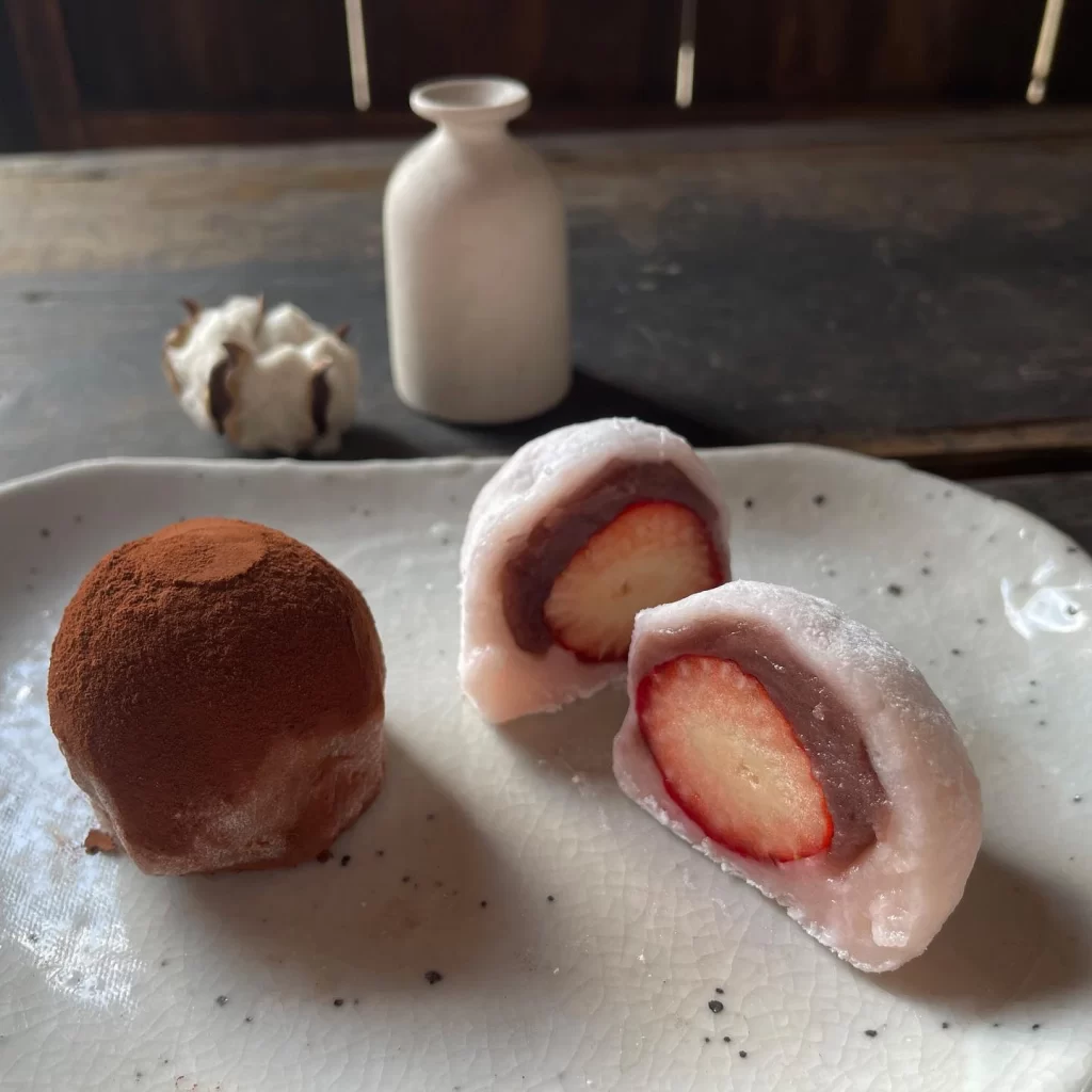 同じくカカオを混ぜた求肥餅にコレらを包んで