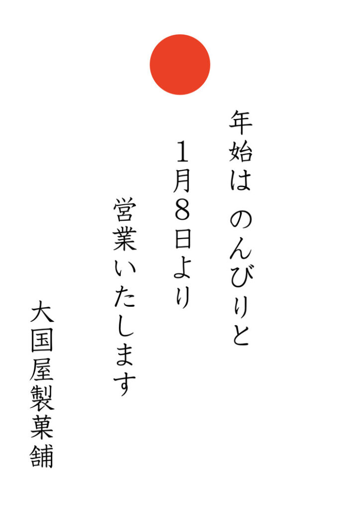 通常の和菓子販売終了と正月休みのお知らせ