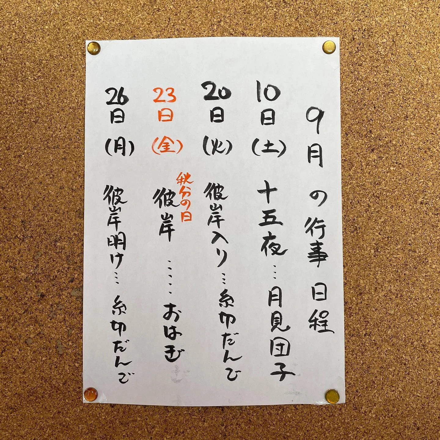 9月の行事日程 十五夜