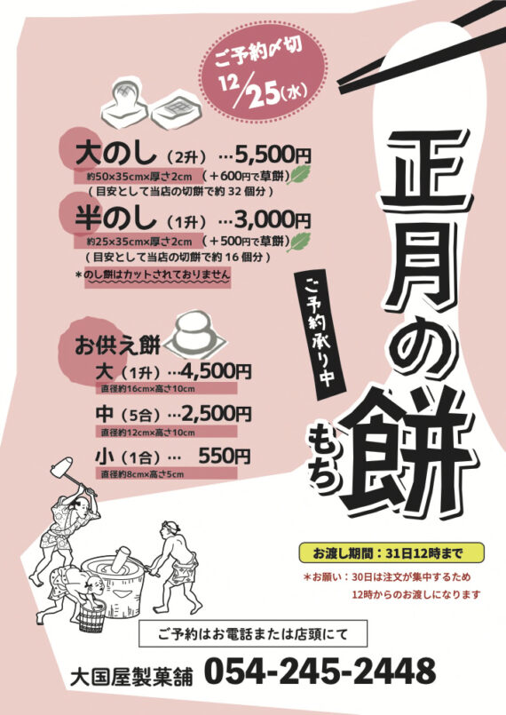 お知らせ遅くなりましたが 正月餅の予約、承っております🙇🏻♂️ やはりご存知の通り 米価格が少々上がっており 昨年よりも全体的に1割程度 値段を上げさせて頂いたこと 御了承くださ…